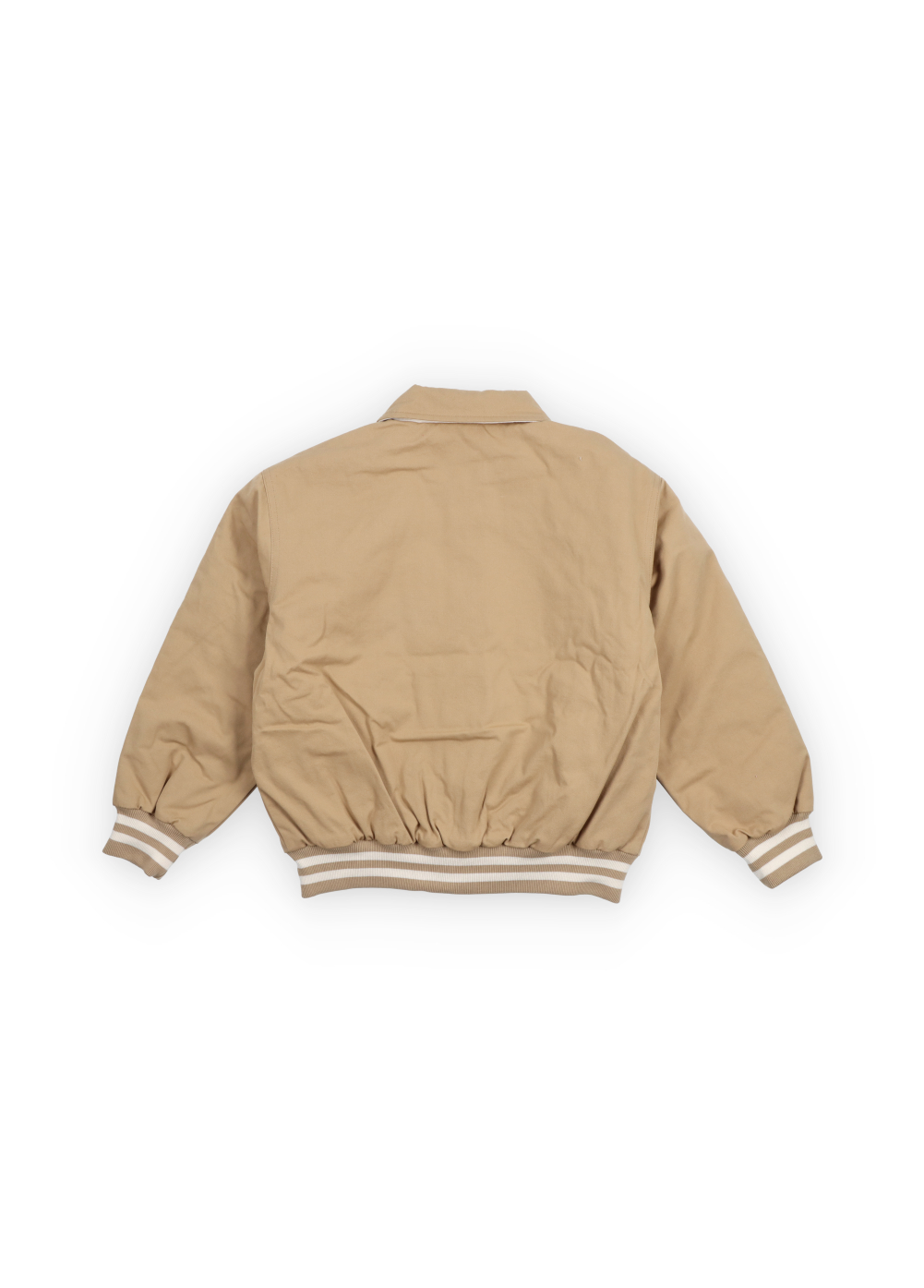 Mit dieser beigen Bomberjacke von The New Society bleibt Dein Kind kuschelig warm und liegt voll im Trend. Mit ihrem modernen Schriftzug auf der Vorderseite verbindet sie Mode mit Alltagskomfort und ist für angenehmen Tragekomfort leicht gefüttert. Sie ist leicht und dennoch warm und eignet sich perfekt zum Überziehen über ein Lieblings-T-Shirt, während sie jedem Outfit einen eleganten, modernen Touch verleiht.