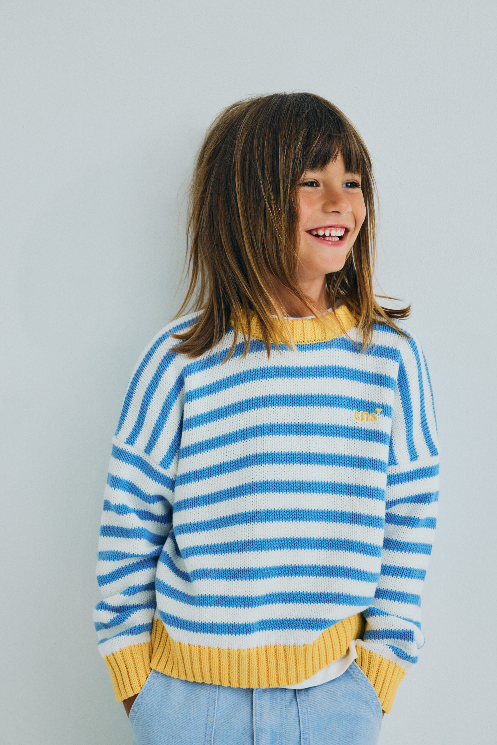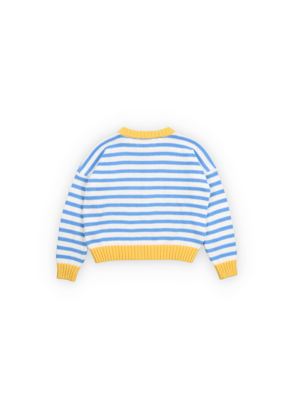 Ein wunderbar weicher Strickpullover aus 100 % Bio-Baumwolle mit Rundhalsausschnitt, Logo-Stickerei auf der Vorderseite und jeder Menge guter Laune dank des fröhlichen Streifendesigns. 💛